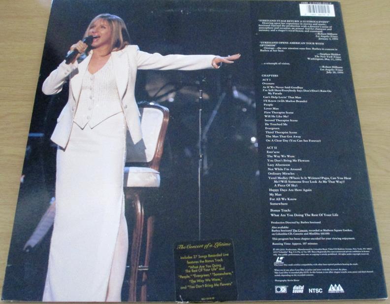 BARBRA STREISAND The Concert Live at the Arrowhead Pond Anaheim, July 1994 LASERDISC